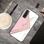 Huawei P Smart (2021) – ovitek soft gel TPU s trikotnikom in marmorjem (roza siv)