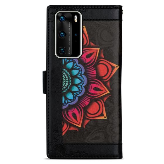 Huawei P40 Pro – preklopni etui z vzorcem mandale in magnetom (črn)