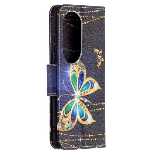 Huawei P50 Pro – preklopni etui z vzorcem metulja (črn)