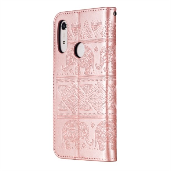 Huawei Y6 (2019) – preklopni etui z vzorcem slonov (rose gold)