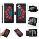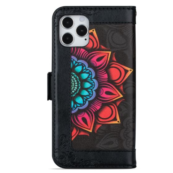 iPhone 11 Pro Max – preklopni etui z vzorcem mandale in magnetom (črn)