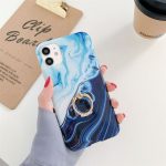 iPhone 12 / 12 Pro – ovitek soft gel TPU z vzorcem marmorja in držalom (moder)