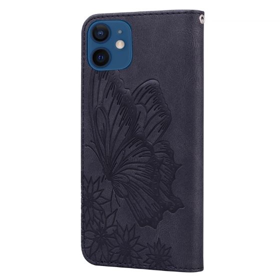 iPhone 12 / 12 Pro – preklopni etui z vtisom metulja (črn)