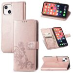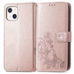 iPhone 13 – preklopni etui z vzorcem deteljice (rose gold)