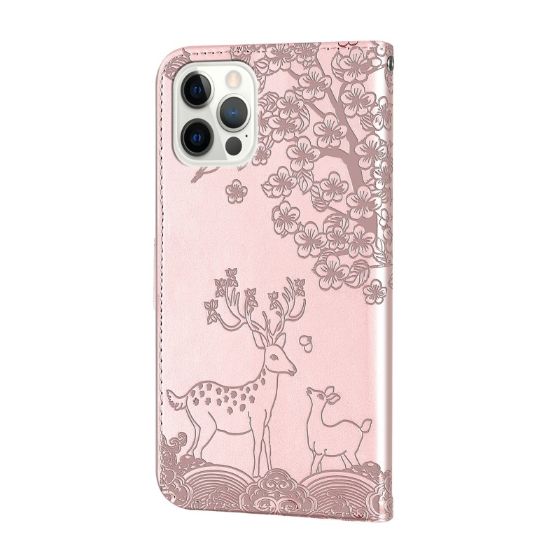 iPhone 13 Pro Max – preklopni etui z vzorcem jelena in mladička (rose gold)