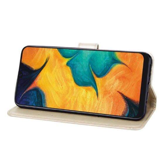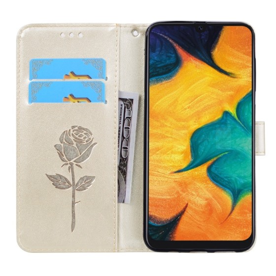Samsung Galaxy A30 – preklopni etui z vzorcem vrtnice (zlat)