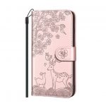 Samsung Galaxy A41 – preklopni etui z vzorcem jelena in mladička (rose gold)