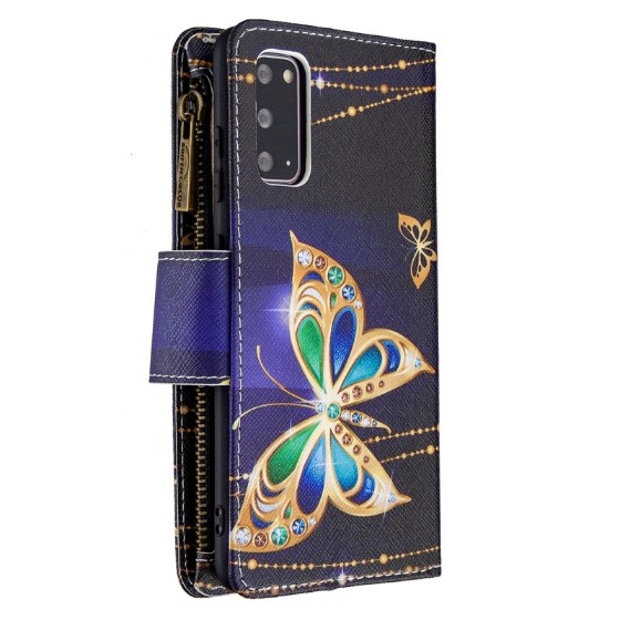 Samsung Galaxy S20 / S20 5G – preklopni etui z malo denarnico na zadrgo z vzorcem metulja (črn)