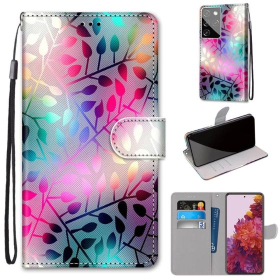Samsung Galaxy S21 Ultra 5G – preklopni etui z vejicami z listki (večbarven)