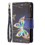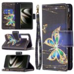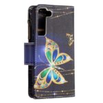 Samsung Galaxy S22 5G – preklopni etui z malo denarnico na zadrgo z vzorcem metulja (črn)