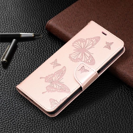 Xiaomi Mi 10T Lite 5G – preklopni etui z vzorcem metuljev (rose gold)